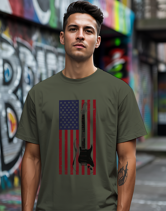 American Flag Guitar Tee πΈ Patriotic Music Shirt - USA Guitarist Gift