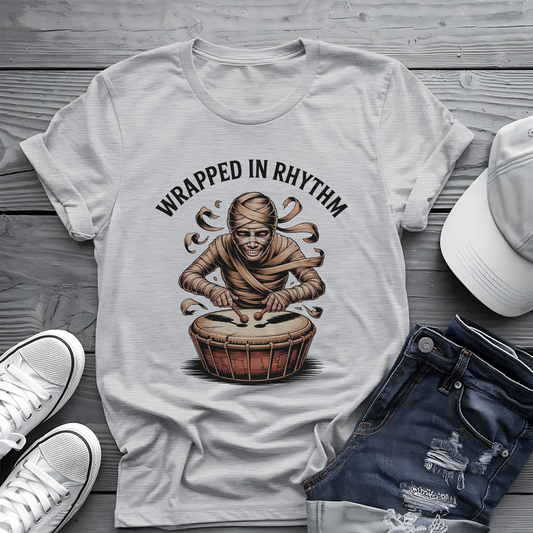 Wrapped in Rhythm Tee π₯ Spooky Mummy Drummer Shirt