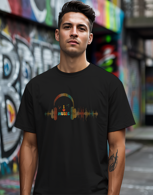 Vintage Headphones & Soundwave Tee ๐ง Retro Music Shirt - Colorful Audiophile Gift