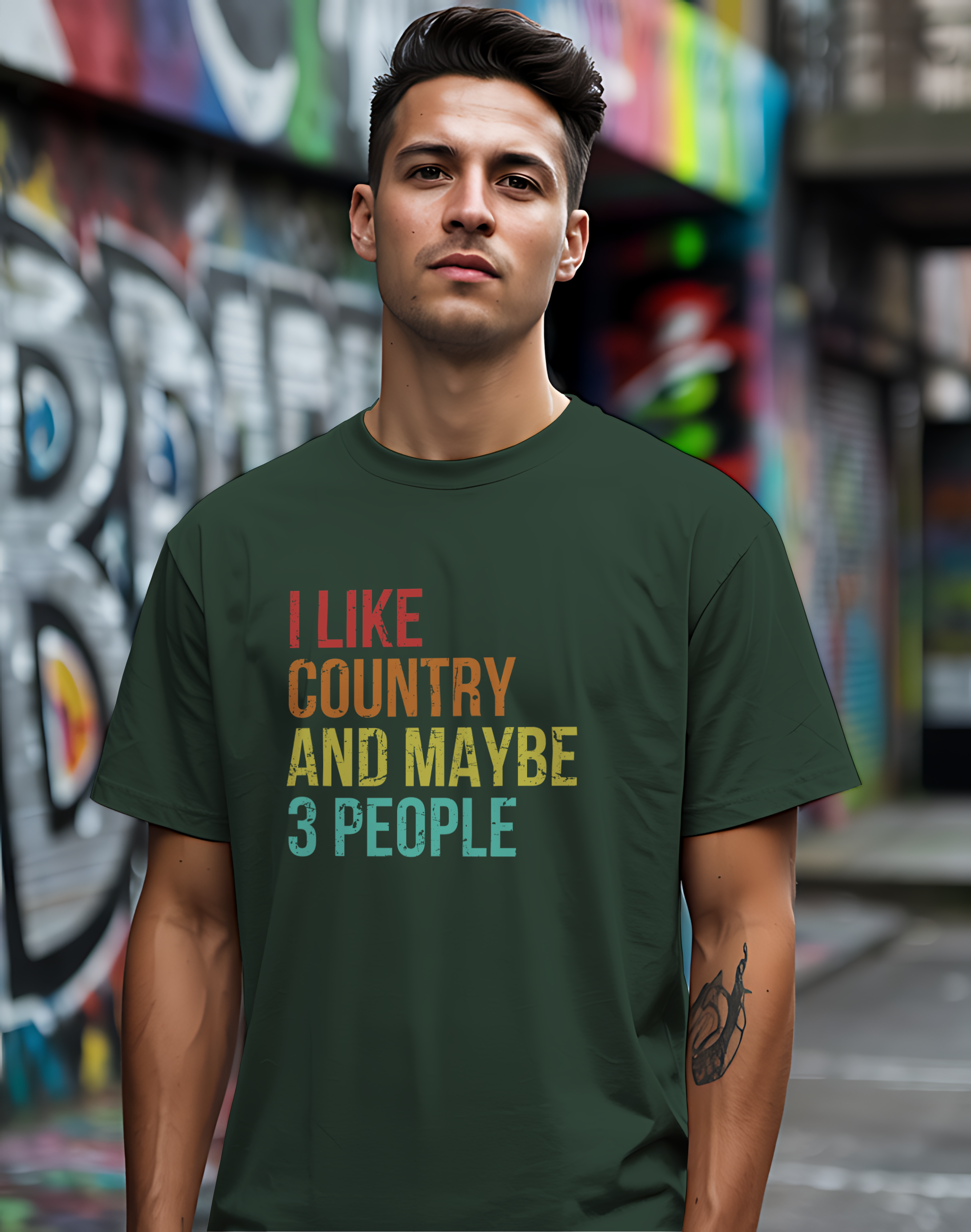 I Like Country and Maybe 3 People Tee π€ Funny Introvert Country Shirt - Retro Design