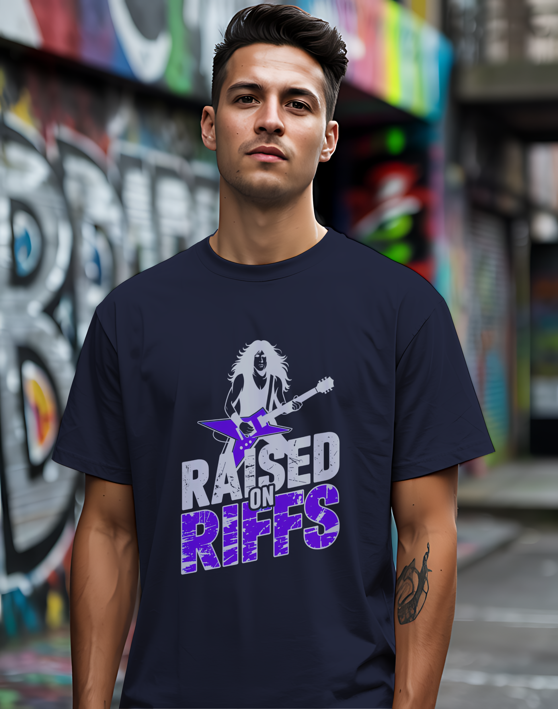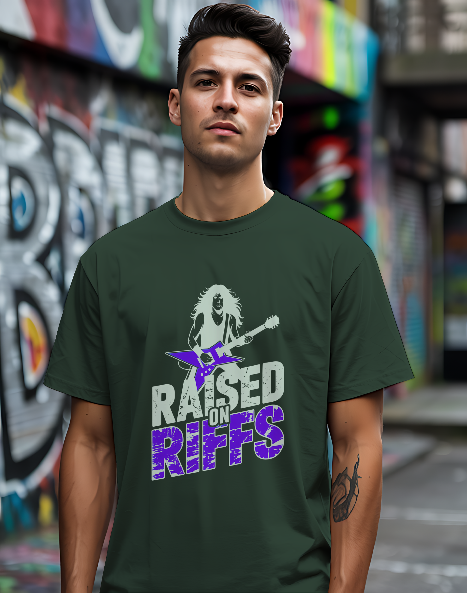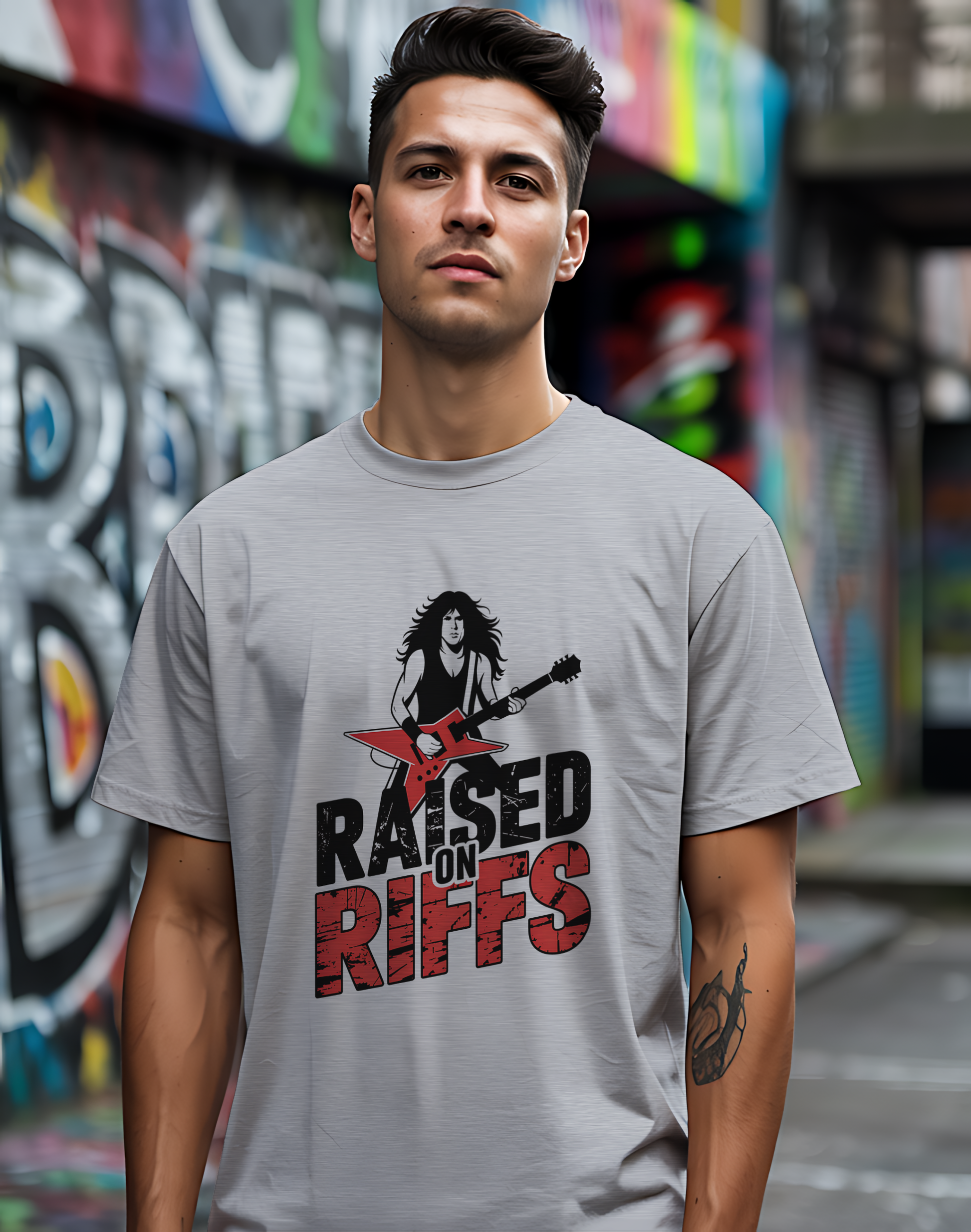 Raised On Riffs Tee πΈ Bold Rock Guitar Music Shirt